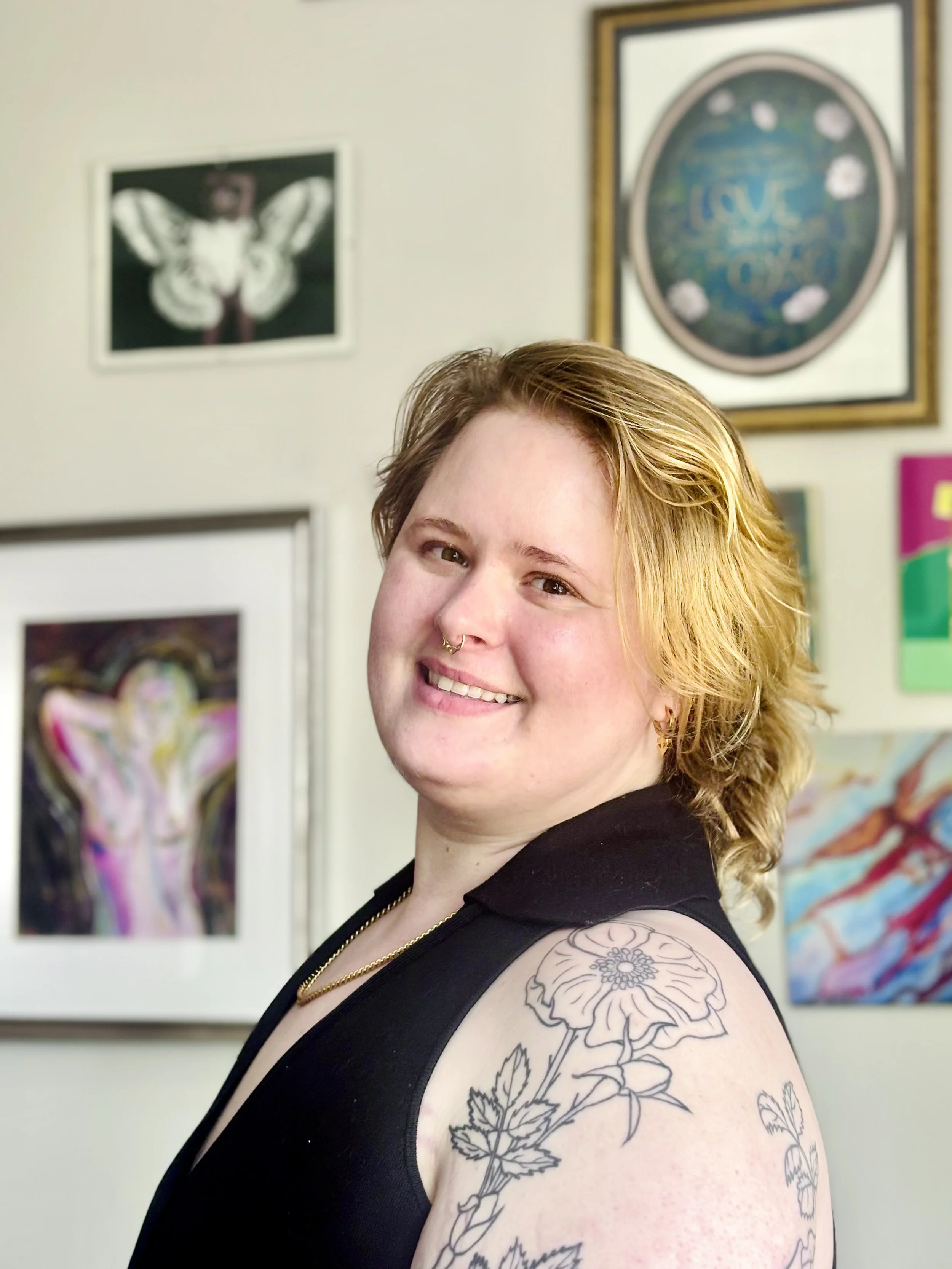 River MacLeod (they/them) is a Chicago-based emerging artist. They enjoy creating abstracts and figural portraiture, using a variety of 2D mediums. Recently, River has been delving into acrylic work, and they have a large body of watercolors. They also enjoy digital art and graphic design. River is inspired by emotional expression and strives to create work that is both evocative and beautiful.